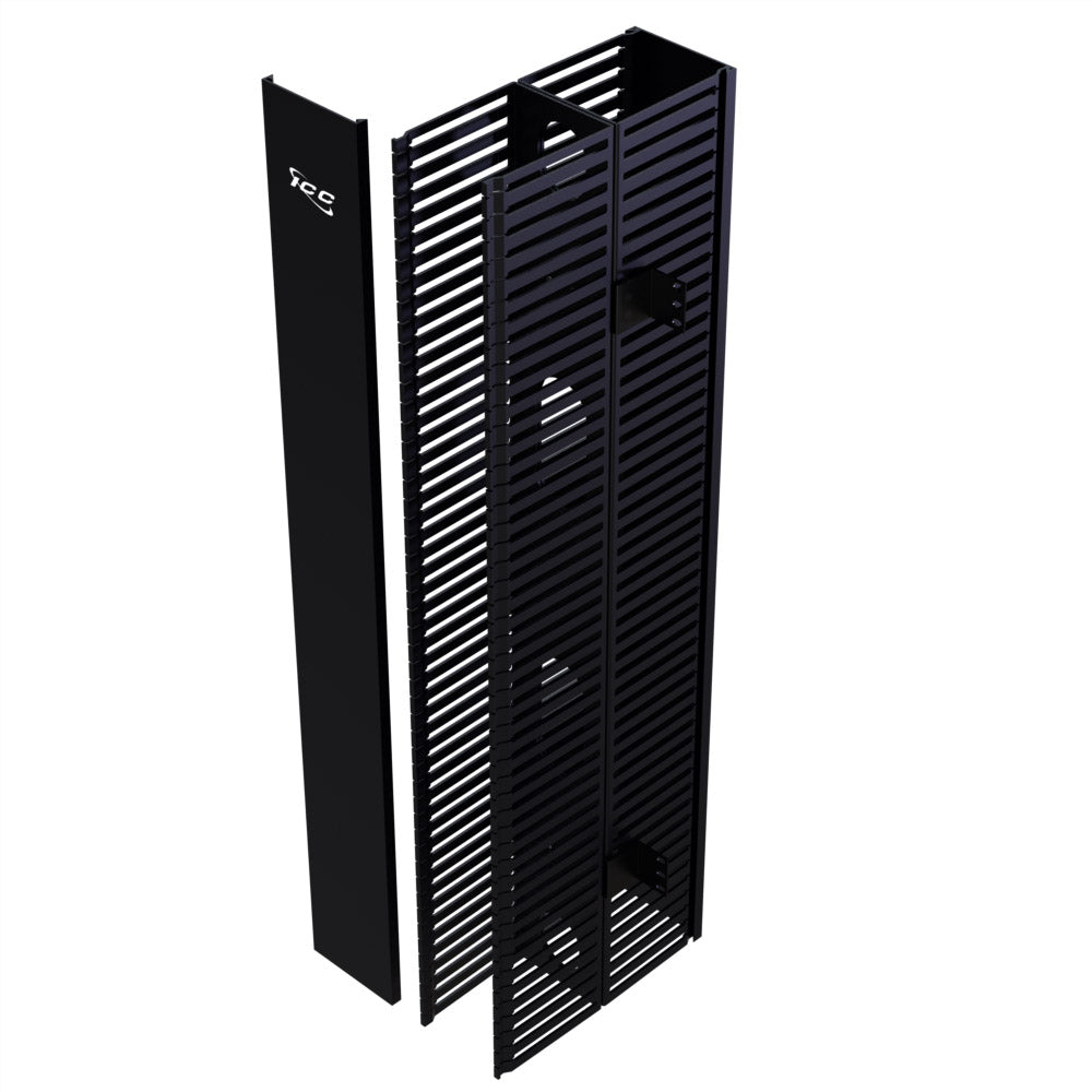 Vertical Finger Duct Front & Back Cable Management PanelProvides flexibility for vertical cable management for the front and back of a rackFits on the sides of individual racks but can also be used to join two distribution racksEquipped with feed-through holes on the back side for easier cable routing from front to back or back to frontIncludes covers to conceal routed cables providing a neat and clean appearanceCompatible with all ICC distribution racks